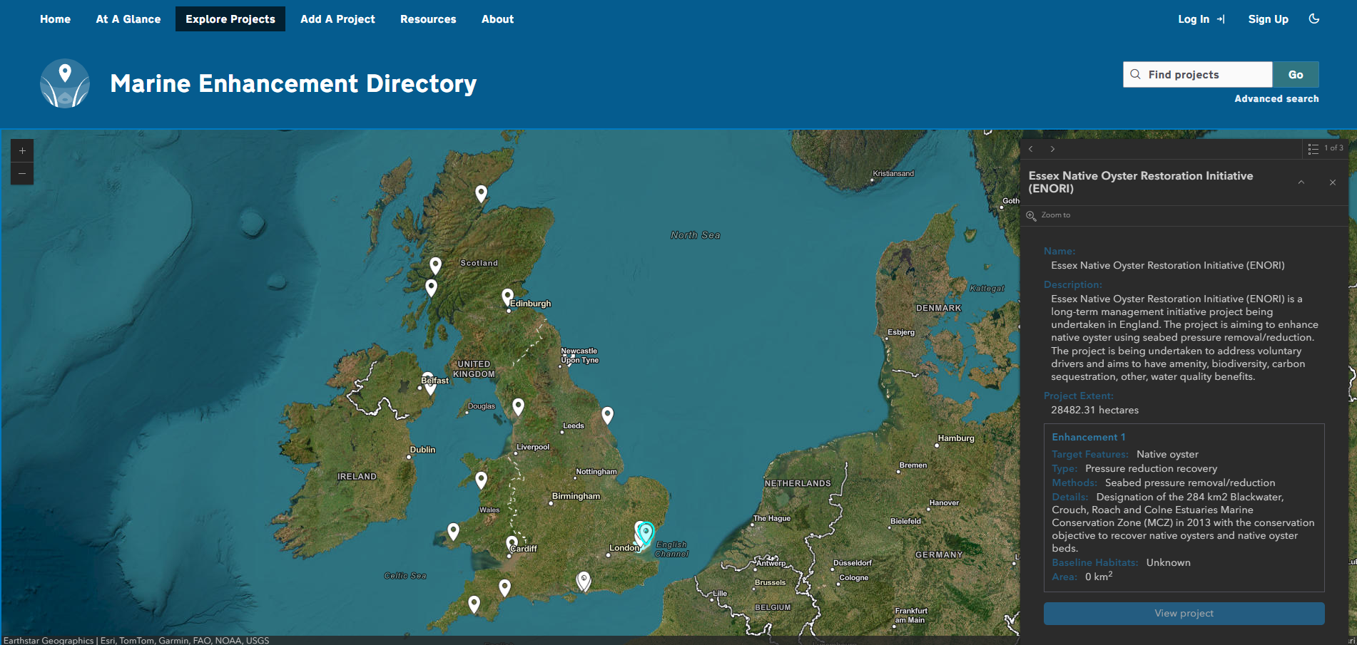 The Marine Enhancement Directory, developed by ABPmer, enables users to map, audit and manage habitat creation and restoration activities across the UK